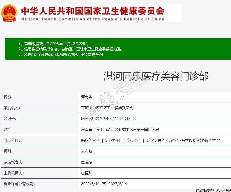 平顶山同乐医疗美容,诊疗科目:医疗美容科 | 美容外科 | 美容牙科 | 美容皮肤科 /麻醉科 /医学检验科(协议)******