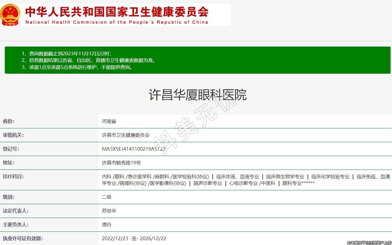审批机关:许昌市卫生健康委员会