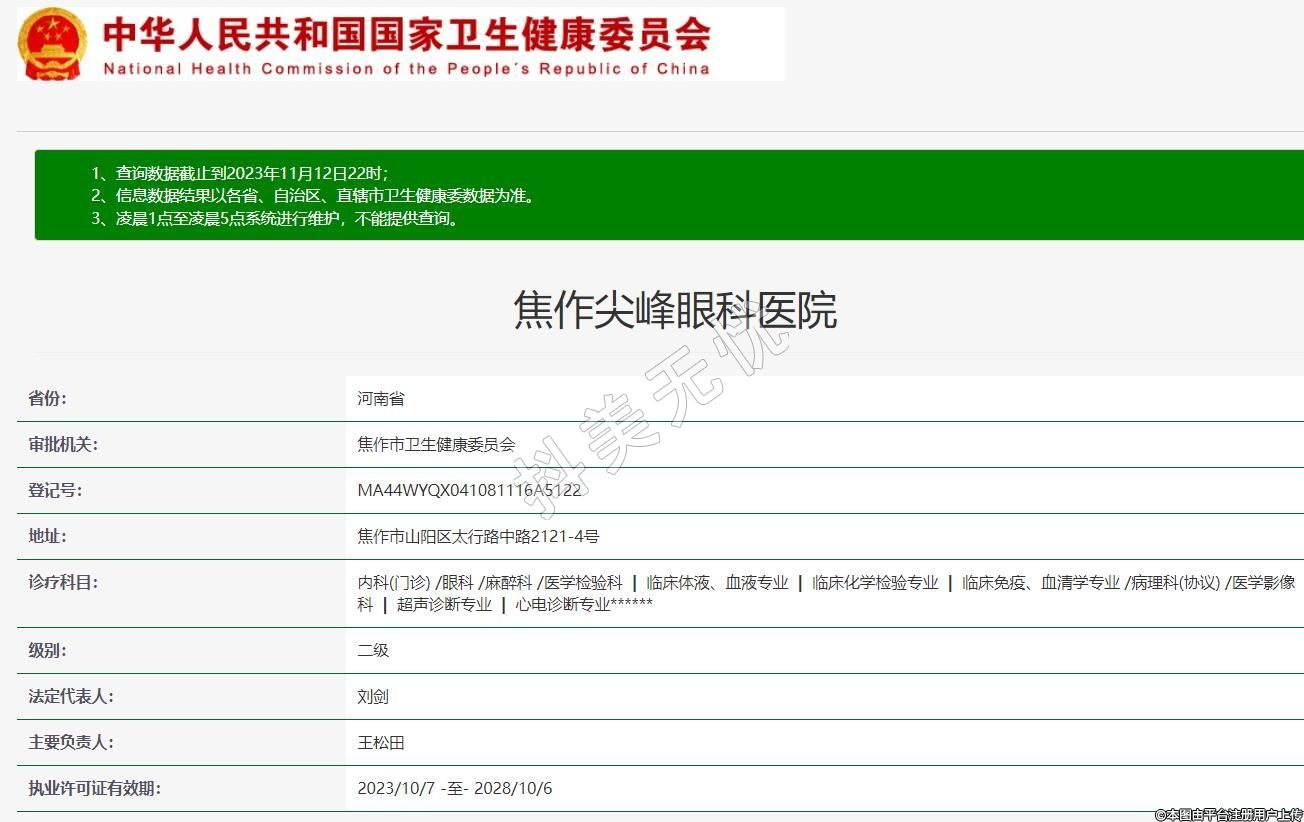执业许可证有效期:2023/10/7 -至- 2028/10/6