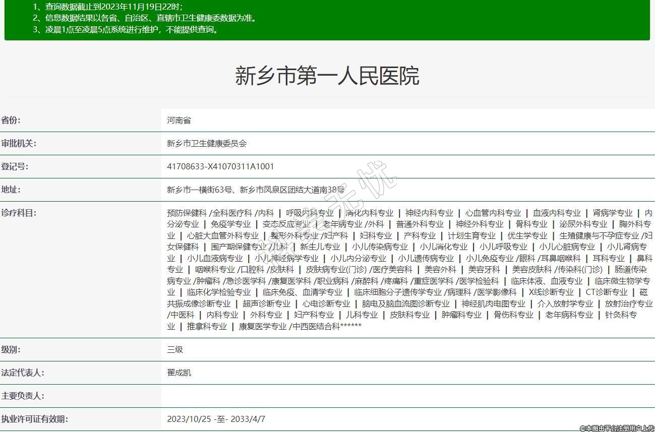 审批机关:新乡市卫生健康委员会