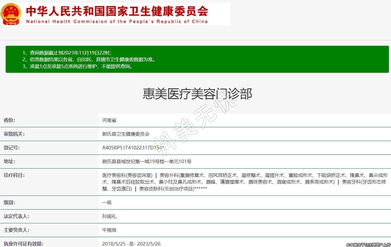 惠美医疗美容门诊部,诊疗科目:医疗美容科(美容咨询室) | 美容外科(重唇修复术、招风耳矫正术、眉修整术、眉提升术、重睑成形术、下睑袋矫正术、隆鼻术、鼻尖成形术、隆鼻术后硅胶取出术、鼻小柱及鼻孔成形术、唇峰、薄唇增厚术、唇珠美容术、酒窝成形术、唇系带成形术) | 美容牙科(牙齿形态修整、牙齿漂白) | 美容皮肤科(无创治疗项目)******