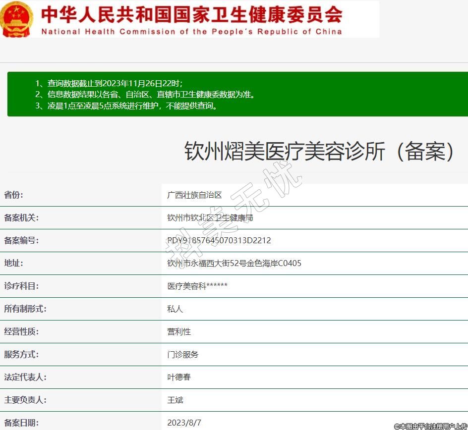 钦州熠美医疗美容诊所(备案),诊疗科目:医疗美容科******