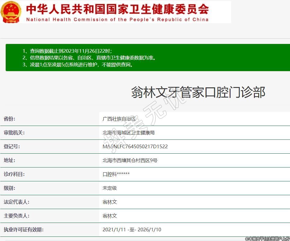北海牙管家口腔门诊部前身为仁仁康牙科于2010年成立,统一社会信用代码:92450502MA5NLFC76N,2019年更名为翁林文口腔,2021年1月份升级为牙管家口腔门诊部。北海市海城区西塘其仓村西区9号,重庆路其仓村铺面(唐会旁边)。环境优雅,设备先进,操作规范,是北海市一家专业的口腔美容机构。