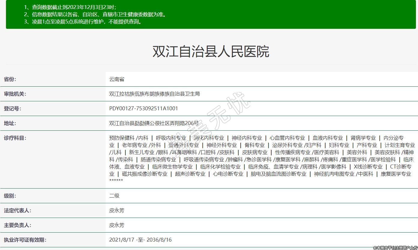审批机关:双江拉祜族佤族布朗族傣族自治县卫生局