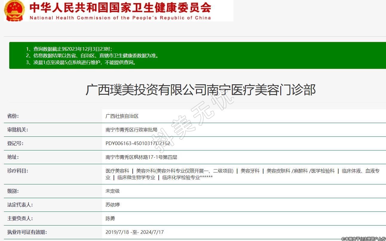 广西璞美投资有限公司南宁医疗美容门诊部