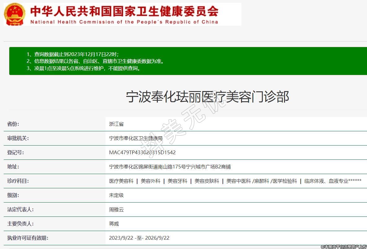 宁波奉化珐丽医疗美容门诊部,诊疗科目:医疗美容科 | 美容外科 | 美容牙科 | 美容皮肤科 | 美容中医科 /麻醉科 /医学检验科 | 临床体液、血液专业******