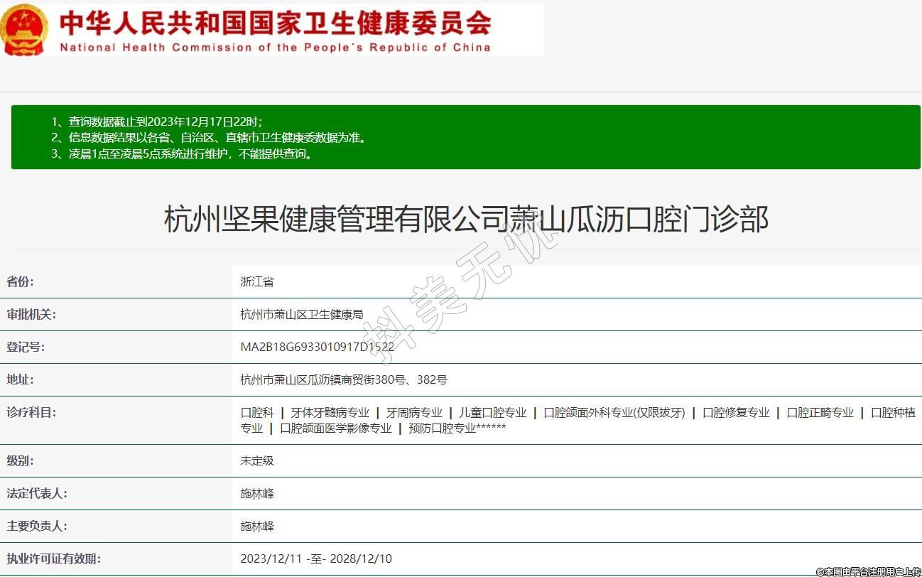 杭州坚果健康管理有限公司萧山瓜沥口腔门诊部