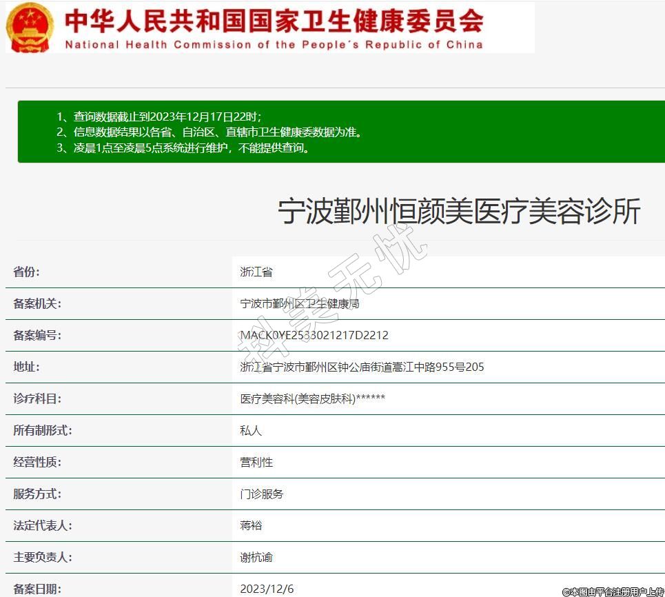 宁波鄞州恒颜美医疗美容诊所,诊疗科目:医疗美容科(美容皮肤科)******