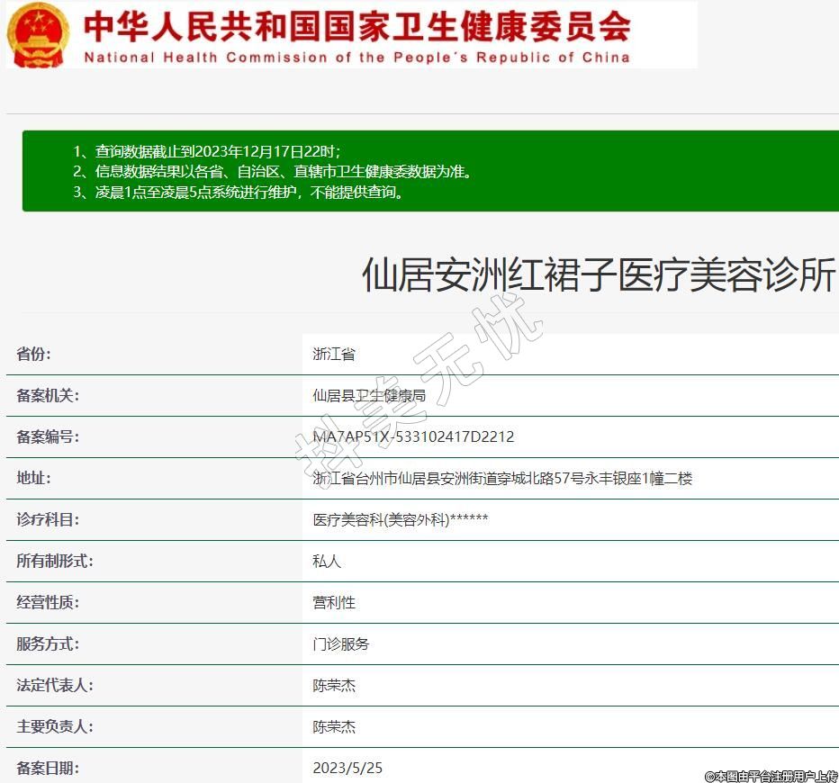 仙居安洲红裙子医疗美容诊所,诊疗科目:医疗美容科(美容外科)******