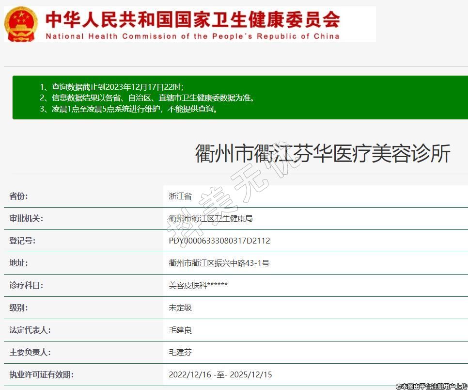 衢州市衢江芬华医疗美容诊所,诊疗科目:美容皮肤科******
