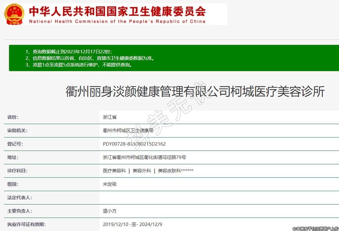 衢州丽身淡颜健康管理有限公司柯城医疗美容诊所,诊疗科目:医疗美容科 | 美容外科 | 美容皮肤科******