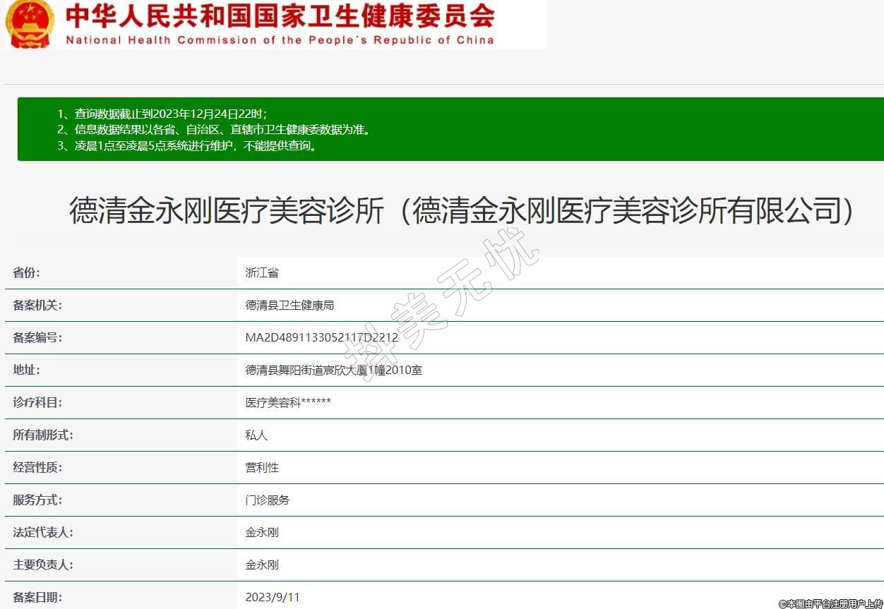 德清金永刚医疗美容诊所(德清金永刚医疗美容诊所有限公司),诊疗科目:医疗美容科******