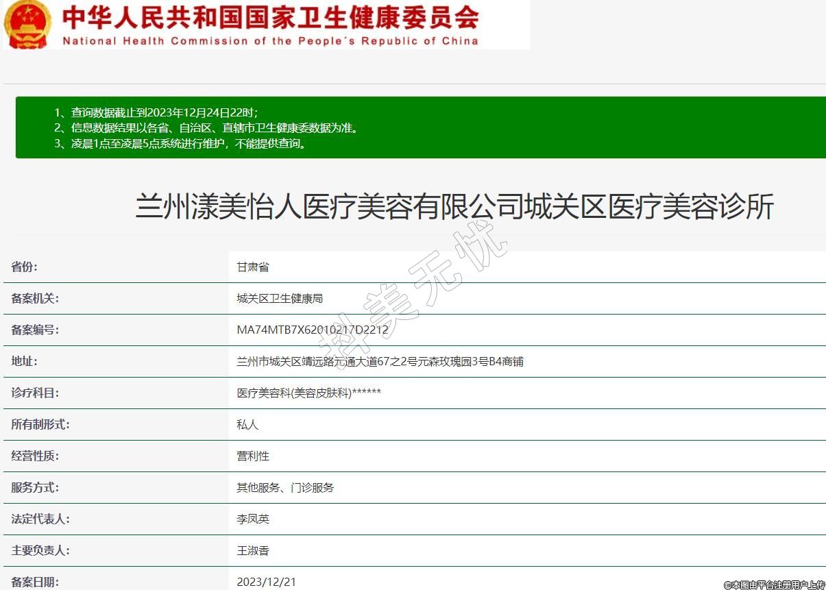 兰州漾美怡人医疗美容诊所,地址:兰州市城关区靖远路元通大道67之2号元森玫瑰园3号B4商铺医院的经营项目医疗美容服务.疤痕.皮肤病.抗衰.光电项目。
