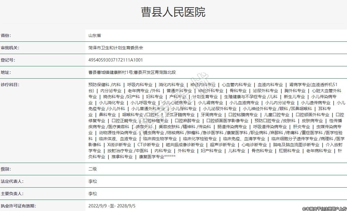 执业许可证有效期:2022/9/9 -至- 2028/9/5