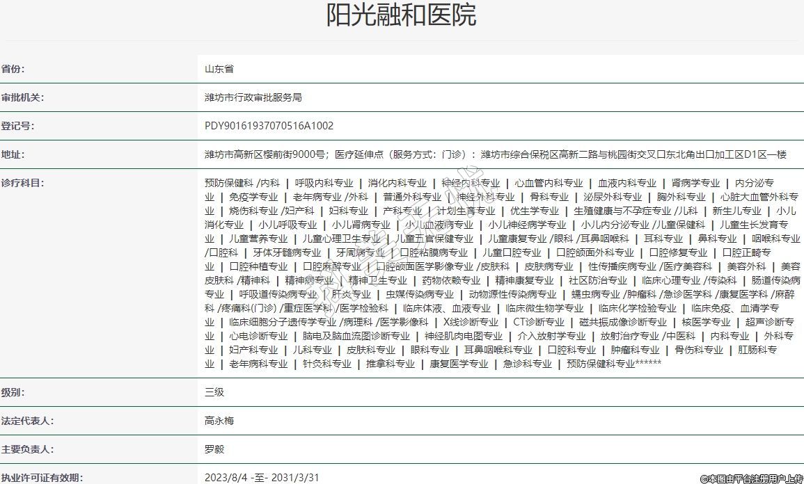 执业许可证有效期:2023/8/4 -至- 2031/3/31