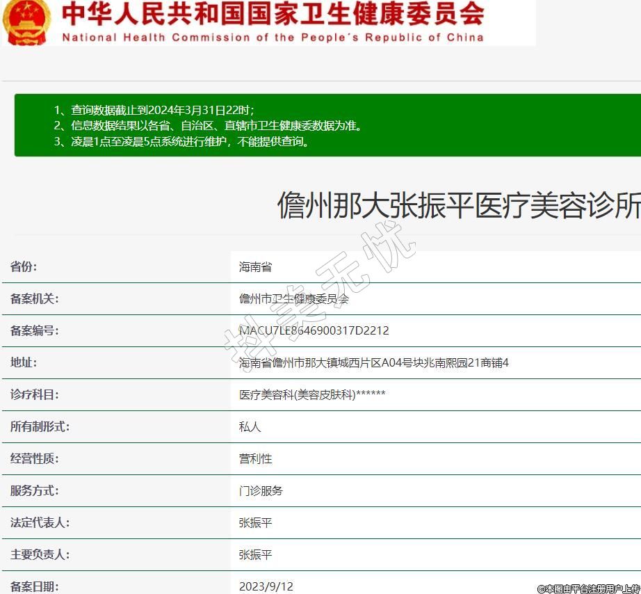 儋州那大张振平医疗美容诊所,诊疗科目:医疗美容科(美容皮肤科)******