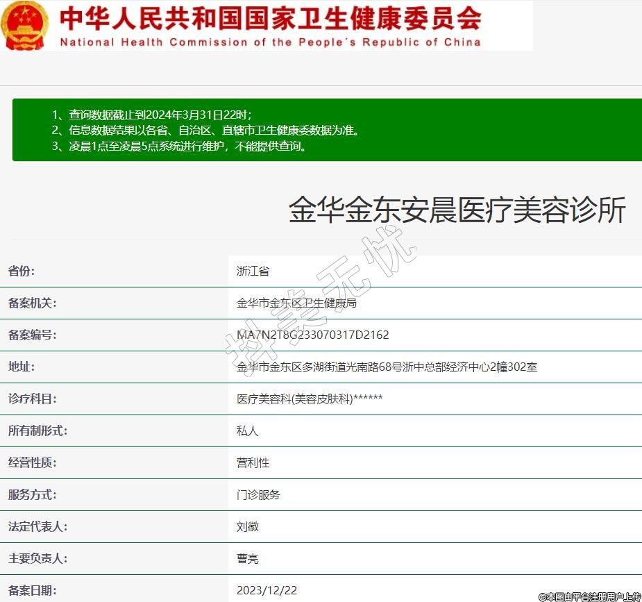 金华金东安晨医疗美容诊所,诊疗科目:医疗美容科(美容皮肤科)******