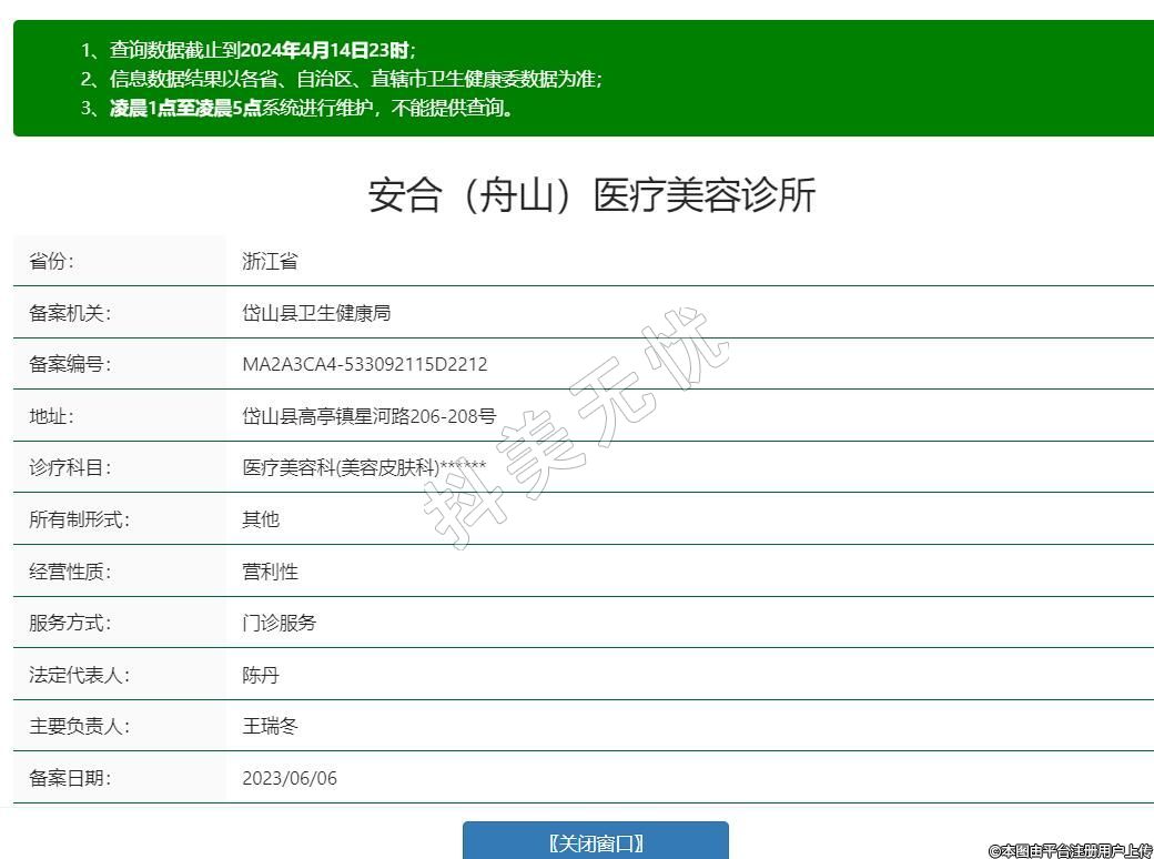 舟山安合医疗美容诊所于2019年创办,统一社会信用代码:91330921MA2A3CA45K,地处于舟山市岱山县高亭镇星河路206、208号。结合国内外前沿仪器与高端大牌产品,准确高效的帮助顾客解决医疗美容以及各类皮肤养护问题。作为本地区科学皮肤管理的开创者,踏实务实并不断创新,受到众多爱美者的拥护与青睐。