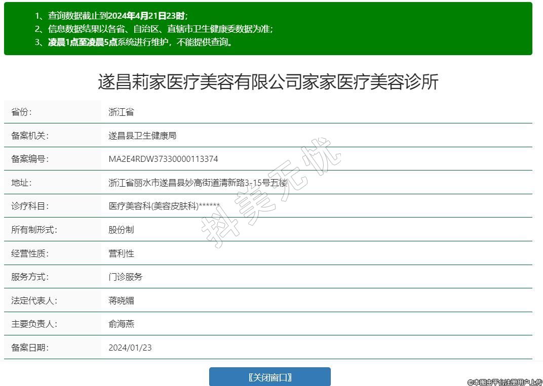 遂昌莉家医疗美容有限公司是一家小微企业,该公司成立于2020年12月16日,位于浙江省丽水市遂昌县妙高街道清新路3-15号五楼,目前处于开业状态,经营范围包括许可项目:医疗美容服务