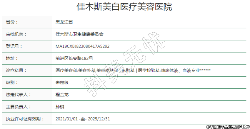佳木斯美白医疗美容是卫生部门批准的正规医疗机构,为医疗美容连锁企业,是国内成立较早的医疗美容机构之一,也是三江地区医疗美容行业的代表,同时是中国医疗整形美容业协会会员单位。佳木斯美白医疗美容门诊部还被评选为“中国受消费者信赖的百家美容整形机构”,多次被评为省市级“消费者信得过单位”。