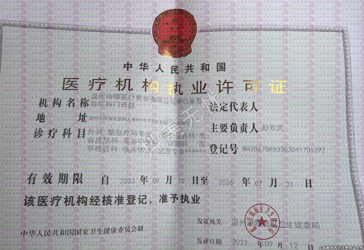 温州哈啰医疗美容有限公司南白象整形外科门诊部(历史名称:温州玉尚美医疗美容),成立于2016年1月14日,医院位于瓯海区华润万象城内,经营范围包括医疗美容服务、整形服务等。医院由李玉爱女士创办,她将时尚的法国整形带到中国,秉承法国整形之精髓,兼收并蓄各国审美理念,将医学科技与现代美学完美交融,为追求高品位生活的爱美人士提供高端的面部整形、形体雕琢、激光美肤、注射美容等医学整形美容服务。