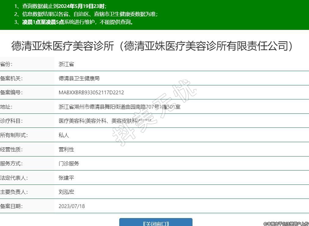 德清亚姝医疗美容诊所(德清亚姝医疗美容诊所有限责任公司),诊疗科目:医疗美容科(美容外科、美容皮肤科)******