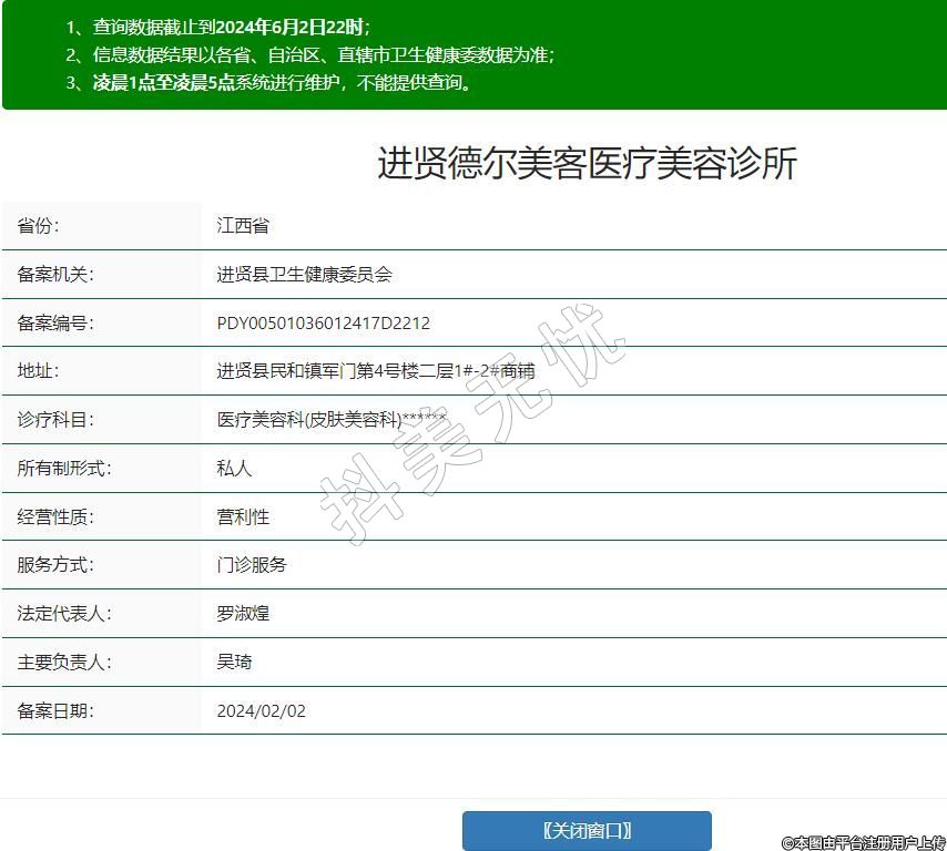 进贤德尔美客医疗美容诊所,诊疗科目:医疗美容科(皮肤美容科)******