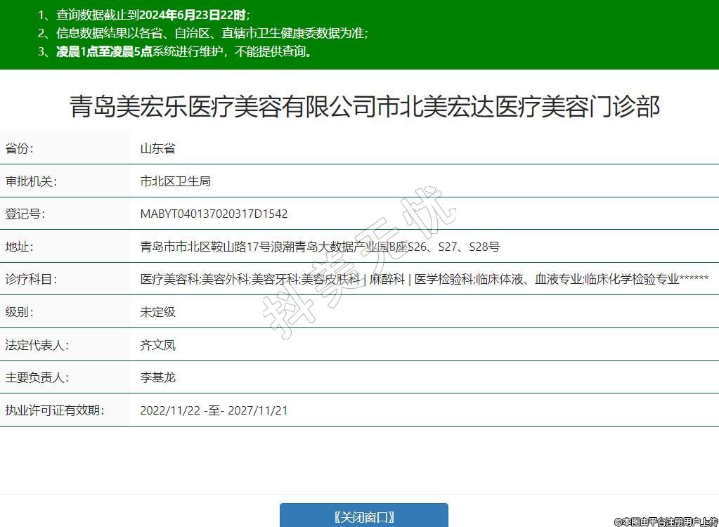 青岛美宏乐医疗美容有限公司市北美宏达医疗美容门诊部