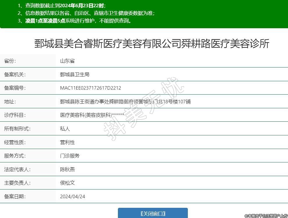 鄄城县美合睿斯医疗美容有限公司舜耕路医疗美容诊所,诊疗科目:医疗美容科(美容皮肤科)******