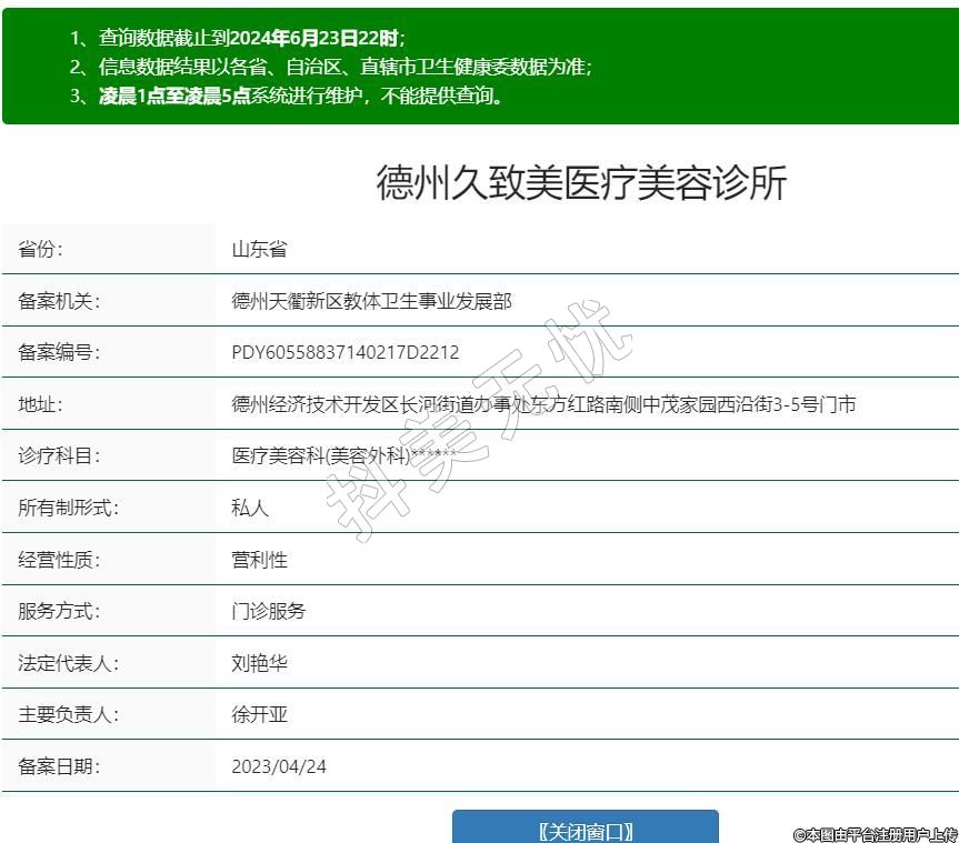 德州久致美医疗美容诊所,诊疗科目:医疗美容科(美容外科)******