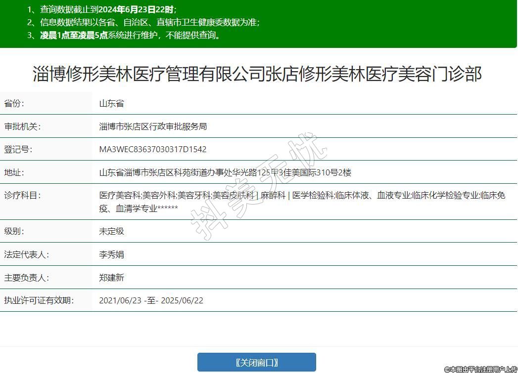 淄博修形美林医疗管理有限公司张店修形美林医疗美容门诊部