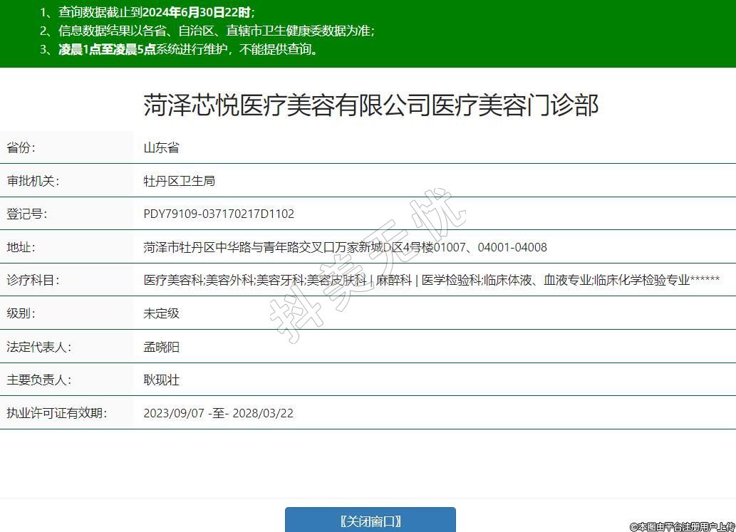 菏泽芯悦医疗美容有限公司医疗美容门诊部