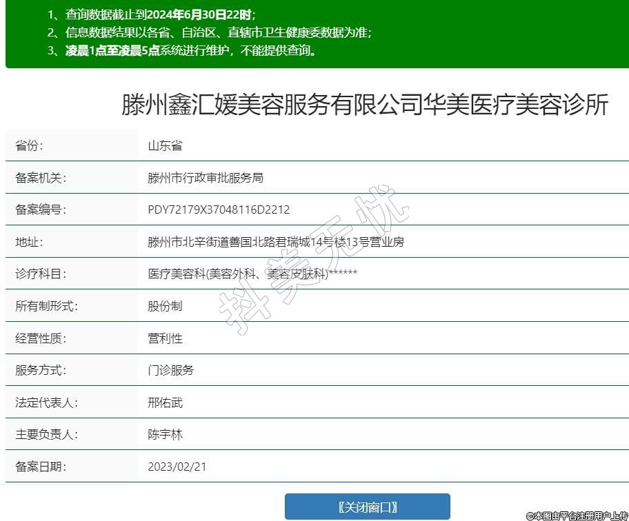 滕州鑫汇媛美容服务有限公司华美医疗美容诊所,诊疗科目:医疗美容科(美容外科、美容皮肤科)******