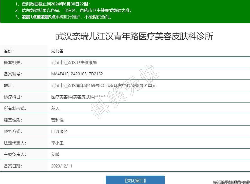 武汉奈瑞儿医疗美容诊所(曾用名:武汉弗一医疗美容诊所),创建于2021年,坐落于武汉市江汉区青年路59号ICC武汉环贸中心A塔8层01单元。精致化的医美享受、正规化的医美服务、可视化的医美结果,是奈瑞儿医疗美容连锁机构的必达使命,更是企业的社会责任与担当。积极参与武汉市关于“美”的建设,让健康美学蔚然成风,奈瑞儿医疗美容连锁机构必将向社会交出一份的完美答卷。