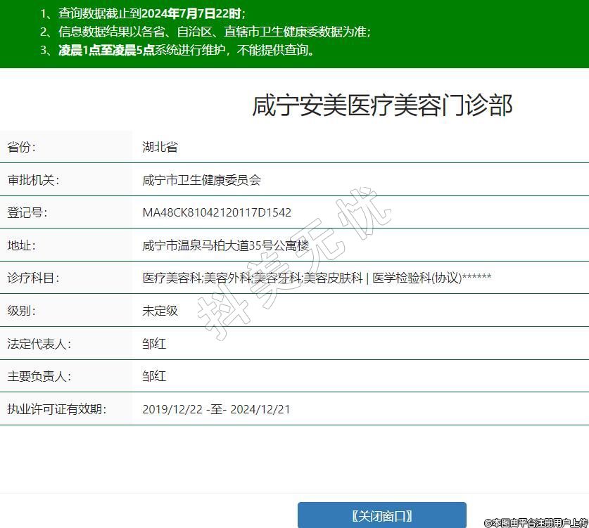 咸宁安美医疗美容门诊部,诊疗科目:医疗美容科;美容外科;美容牙科;美容皮肤科 | 医学检验科(协议)******