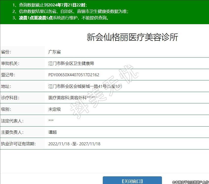 新会仙格丽医疗美容诊所,诊疗科目:医疗美容科;美容外科******