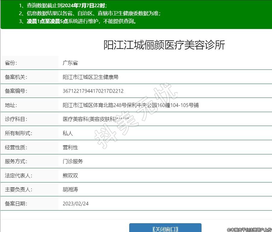 阳江江城俪颜医疗美容诊所,诊疗科目:医疗美容科(美容皮肤科)******