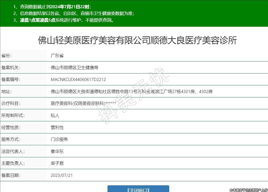 佛山轻美原医疗美容有限公司顺德大良医疗美容诊所,诊疗科目:医疗美容科(仅限美容皮肤科)******