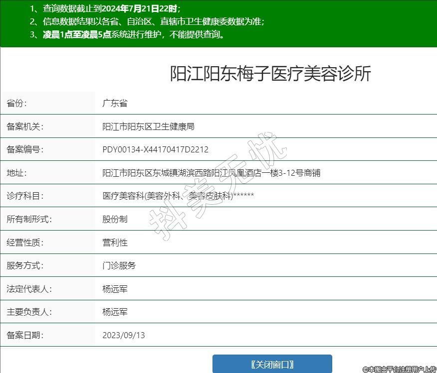 阳江梅子医疗美容门诊部于2023年成立,位于阳江市阳东区东城镇湖滨西路阳江凤凰酒店一楼3-12号商铺。梅子医疗美容是一家集合美容外科和日常皮肤管理,高端抗衰为一体的全域医美医学平台,多元化的医美视角与高品质的生活艺术导向塑造出打破生活边界的美丽,相信专业的力量与追逐美丽的梦想是我们的基本精神,以科技重塑美丽:以生活激活美丽:梅子医疗美容将一直保持着高端医美潮流的特质,贵以诚信,美赠佳人,真诚的对待每一位求美者:合作伙伴与同事,这是我院基本准则,也是企业经营与管理的核心,乃生存之本!