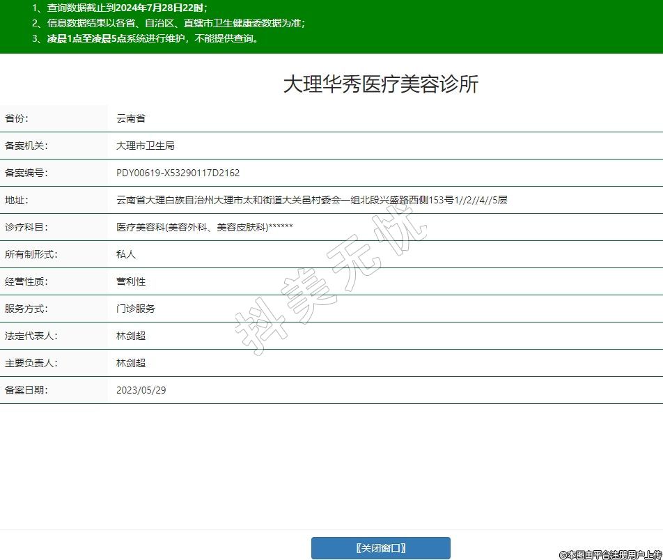 大理华秀医疗美容,诊疗科目:医疗美容科(美容外科、美容皮肤科)******