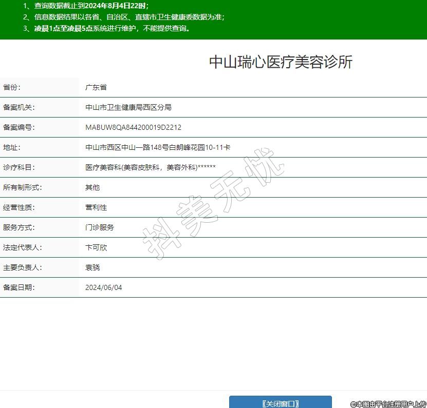 中山瑞心医疗美容诊所,诊疗科目:医疗美容科(美容皮肤科,美容外科)******