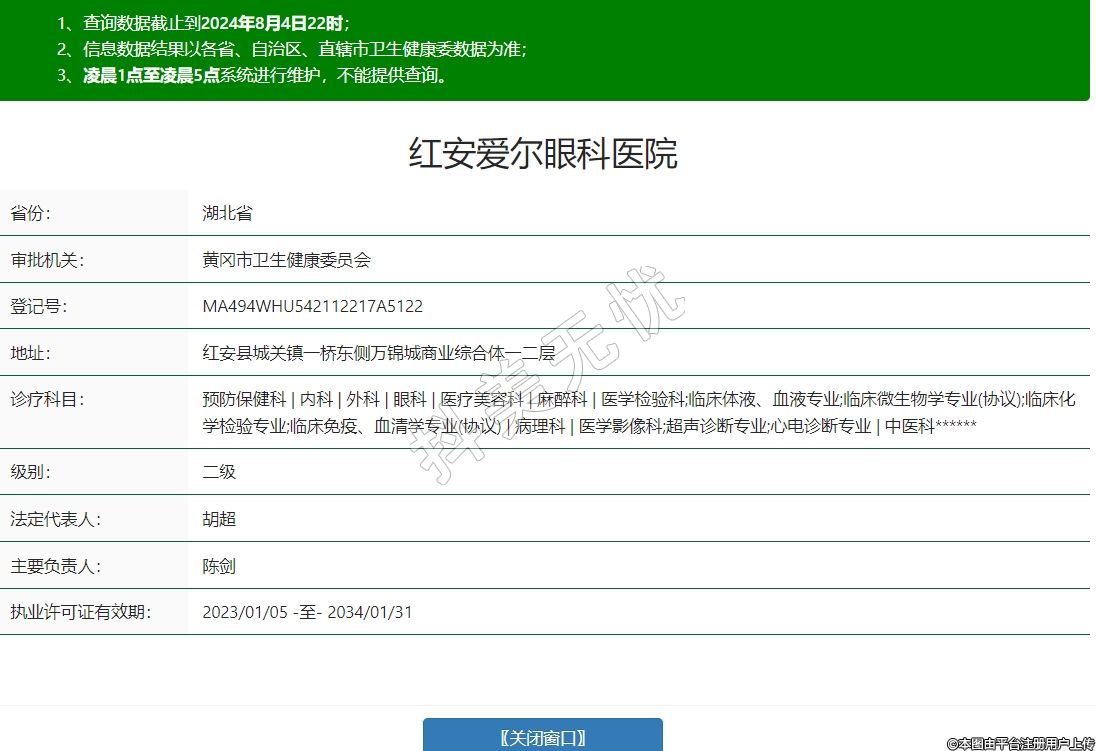 红安爱尔眼科医院,诊疗科目:预防保健科 | 内科 | 外科 | 眼科 | 医疗美容科 | 麻醉科 | 医学检验科;临床体液、血液专业;临床微生物学专业(协议);临床化学检验专业;临床免疫、血清学专业(协议) | 病理科 | 医学影像科;超声诊断专业;心电诊断专业 | 中医科******