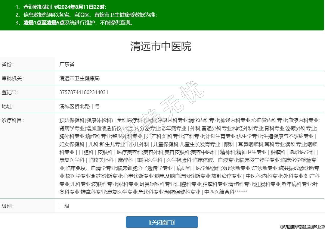 预防保健科(健康体检科) | 全科医疗科 | 内科;呼吸内科专业;消化内科专业;神经内科专业;心血管内科专业;血液内科专业;肾病学专业(增加血液透析仪14台);内分泌专业;老年病专业 | 外科;普通外科专业;神经外科专业;骨科专业;泌尿外科专业;胸外科专业;烧伤科专业;整形外科专业 | 妇产科;妇科专业;产科专业;计划生育专业;优生学专业;生殖健康与不孕症专业 | 妇女保健科 | 儿科;新生儿专业 | 小儿外科 | 儿童保健科;儿童生长发育专业 | 眼科 | 耳鼻咽喉科;耳科专业;鼻科专业;咽喉科专业 | 口腔科 | 皮肤科 | 医疗美容科;美容外科;美容皮肤科;美容中医科 | 精神科;精神卫生专业 | 肿瘤科 | 急诊医学科 | 康复医学科 | 临终关怀科 | 麻醉科 | 重症医学科 | 医学检验科;临床体液、血液专业;临床微生物学专业;临床化学检验专业;临床免疫、血清学专业;临床细胞分子遗传学专业 | 病理科 | 医学影像科;X线诊断专业;CT诊断专业;磁共振成像诊断专业;核医学专业;超声诊断专业;心电诊断专业;脑电及脑血流图诊断专业;放射治疗专业 | 中医科;内科专业;外科专业;妇产科专业;儿科专业;皮肤科专业;眼科专业;耳鼻咽喉科专业;口腔科专业;肿瘤科专业;骨伤科专业;肛肠科专业;老年病科专业;针灸科专业;推拿科专业;康复医学专业;急诊科专业;预防保健科专业 | 中西医结合科******