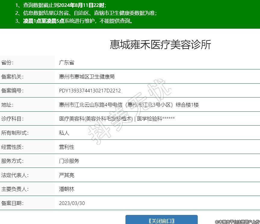惠州雍禾植发医疗美容诊所创建于2020年,隶属雍禾植发连锁,位于惠州市惠城区江北云山东路4号(惠州市江北3号小区)综合楼1楼。雍禾植发是北京雍禾医疗投资管理有限公司旗下品牌,中国植发品牌,商标注册号26129403 ,国际分类10,品牌商标专用权期限2018年09月21日至2028年09月20日。注册地址:北京市朝阳区工人体育场北路8号院4号楼4层5527。以2020年来自植发的总收入计14亿,患者人数超过5万名,医疗机构数量达到53家,覆盖中国25个省50座城市。在行业内排名前列。