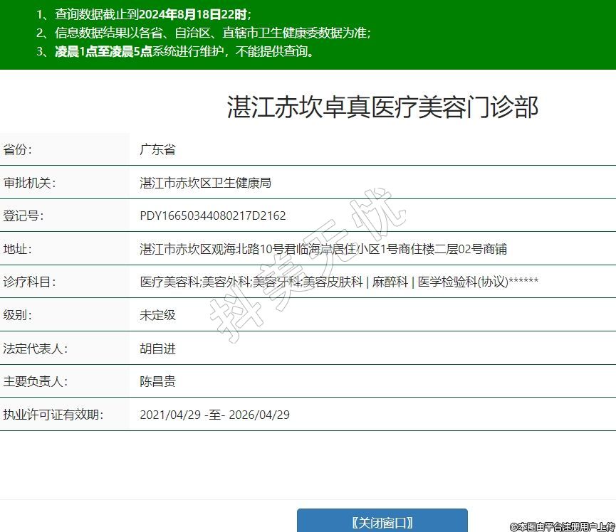湛江卓真医疗美容门诊部成立于2020年,统一社会信用代码:91440802MA55RDEJ8E,位于湛江市赤坎区观海北路10号君临海岸居住小区1号商住楼二层02号商铺。门诊凭借深厚的医疗美容专业背景、先进的医疗美容抗衰专业技术、高品质的医疗美容服务水平、舒适的医疗美容服务环境,确保以一流的技术水平为顾客实现美丽的愿望。