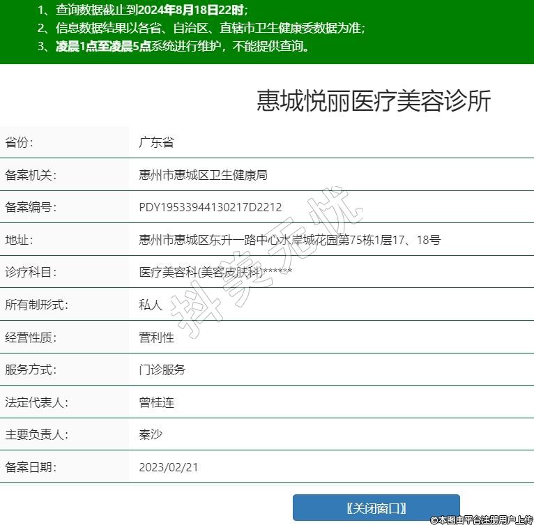 惠城悦丽医疗美容诊所,诊疗科目:医疗美容科(美容皮肤科)******