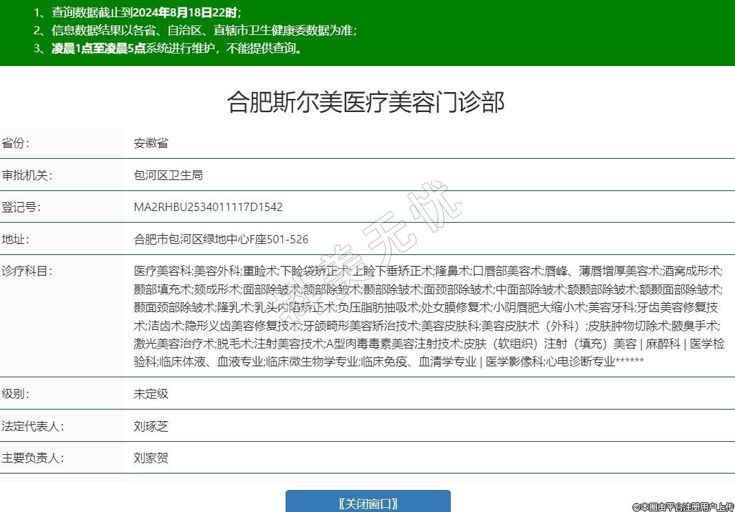 医疗美容科;美容外科;重睑术;下睑袋矫正术;上睑下垂矫正术;隆鼻术;口唇部美容术;唇峰、薄唇增厚美容术;酒窝成形术;颞部填充术;颏成形术;面部除皱术;额部除皱术;颞部除皱术;面颈部除皱术;中面部除皱术;额颞部除皱术;额颞面部除皱术;颞面颈部除皱术;隆乳术;乳头内陷矫正术;负压脂肪抽吸术;处女膜修复术;小阴唇肥大缩小术;美容牙科;牙齿美容修复技术;洁齿术;隐形义齿美容修复技术;牙颌畸形美容矫治技术;美容皮肤科;美容皮肤术(外科);皮肤肿物切除术;腋臭手术;激光美容治疗术;脱毛术;注射美容技术;A型肉毒毒素美容注射技术;皮肤(软组织)注射(填充)美容 | 麻醉科 | 医学检验科;临床体液、血液专业;临床微生物学专业;临床免疫、血清学专业 | 医学影像科;心电诊断专业******