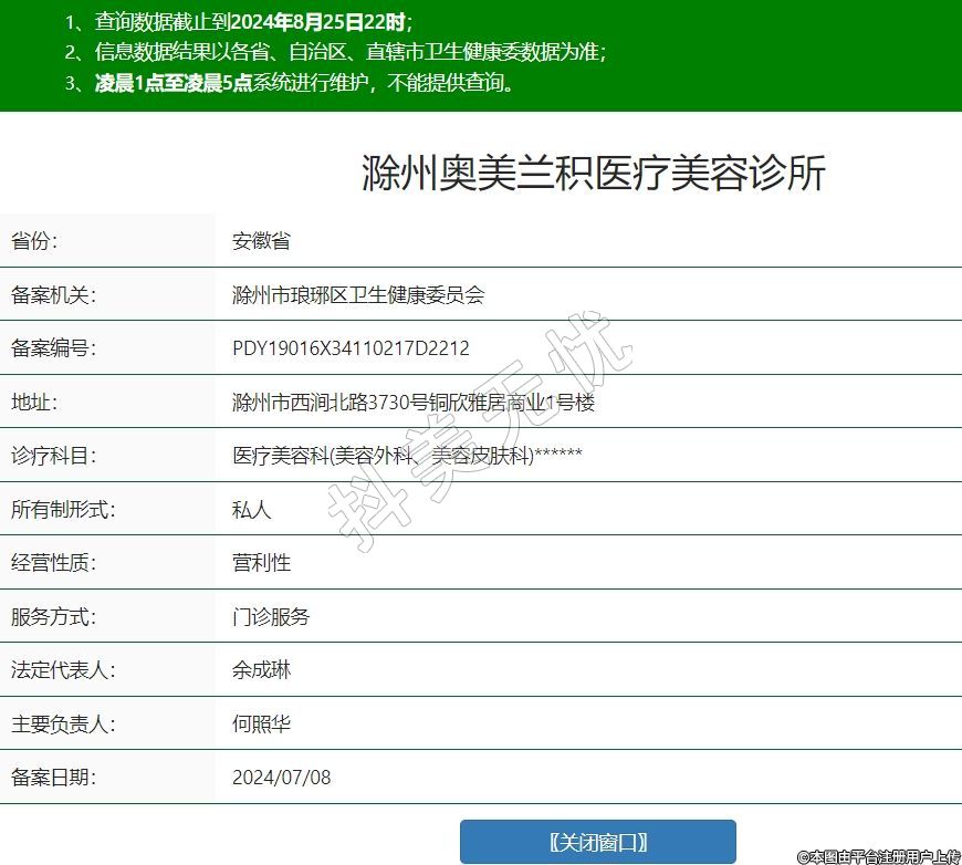 滁州奥美兰积医疗美容诊所,诊疗科目:医疗美容科(美容外科、美容皮肤科)******