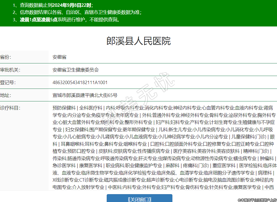 预防保健科 | 全科医疗科 | 内科;呼吸内科专业;消化内科专业;神经内科专业;心血管内科专业;血液内科专业;肾病学专业;内分泌专业;免疫学专业;老年病专业 | 外科;普通外科专业;神经外科专业;骨科专业;泌尿外科专业;胸外科专业;心脏大血管外科专业;烧伤科专业;整形外科专业 | 妇产科;妇科专业;产科专业;计划生育专业;生殖健康与不孕症专业 | 妇女保健科;围产期保健专业;更年期保健专业 | 儿科;新生儿专业;小儿传染病专业;小儿消化专业;小儿呼吸专业;小儿心脏病专业;小儿肾病专业;小儿血液病专业;小儿神经病学专业;小儿内分泌专业 | 儿童保健科(门诊) | 眼科 | 耳鼻咽喉科;耳科专业;鼻科专业;咽喉科专业 | 口腔科;口腔颌面外科专业;口腔修复专业;口腔正畸专业;口腔种植专业;预防口腔专业 | 皮肤科;皮肤病专业;性传播疾病专业 | 医疗美容科;美容外科;美容皮肤科 | 精神科(门诊) | 传染科;肠道传染病专业;呼吸道传染病专业;肝炎专业;虫媒传染病专业;动物源性传染病专业;蠕虫病专业 | 肿瘤科 | 急诊医学科 | 康复医学科 | 职业病科;职业健康监护专业 | 麻醉科 | 疼痛科(门诊) | 重症医学科 | 医学检验科;临床体液、血液专业;临床微生物学专业;临床化学检验专业;临床免疫、血清学专业;临床细胞分子遗传学专业 | 病理科 | X线诊断专业;CT诊断专业;磁共振成像诊断专业;超声诊断专业;心电诊断专业;脑电及脑血流图诊断专业;神经肌肉电图专业;介入放射学专业 | 中医科;内科专业;外科专业;妇产科专业;骨伤科专业;针灸科专业;康复医学专业 | 中西医结合科******