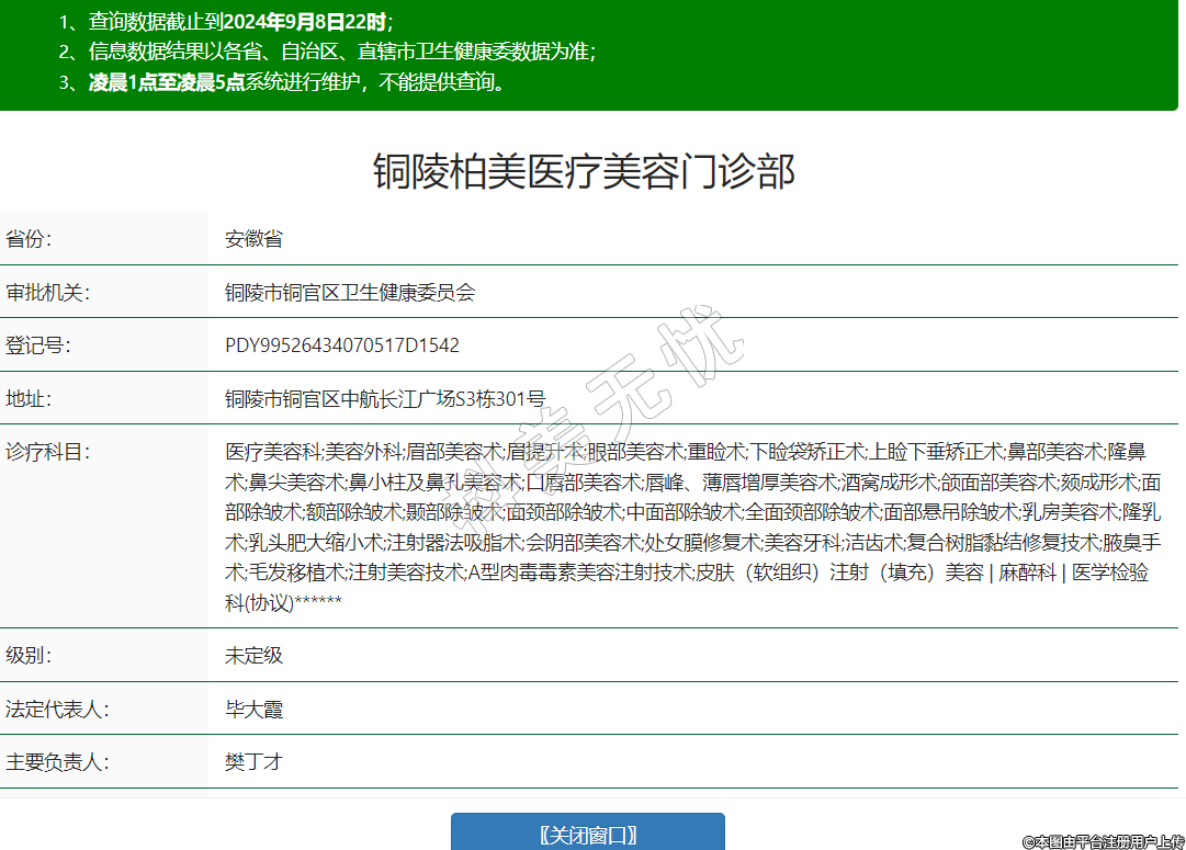医疗美容科;美容外科;眉部美容术;眉提升术;眼部美容术;重睑术;下睑袋矫正术;上睑下垂矫正术;鼻部美容术;隆鼻术;鼻尖美容术;鼻小柱及鼻孔美容术;口唇部美容术;唇峰、薄唇增厚美容术;酒窝成形术;颌面部美容术;颏成形术;面部除皱术;额部除皱术;颞部除皱术;面颈部除皱术;中面部除皱术;全面颈部除皱术;面部悬吊除皱术;乳房美容术;隆乳术;乳头肥大缩小术;注射器法吸脂术;会阴部美容术;处女膜修复术;美容牙科;洁齿术;复合树脂黏结修复技术;腋臭手术;毛发移植术;注射美容技术;A型肉毒毒素美容注射技术;皮肤(软组织)注射(填充)美容 | 麻醉科 | 医学检验科(协议)******